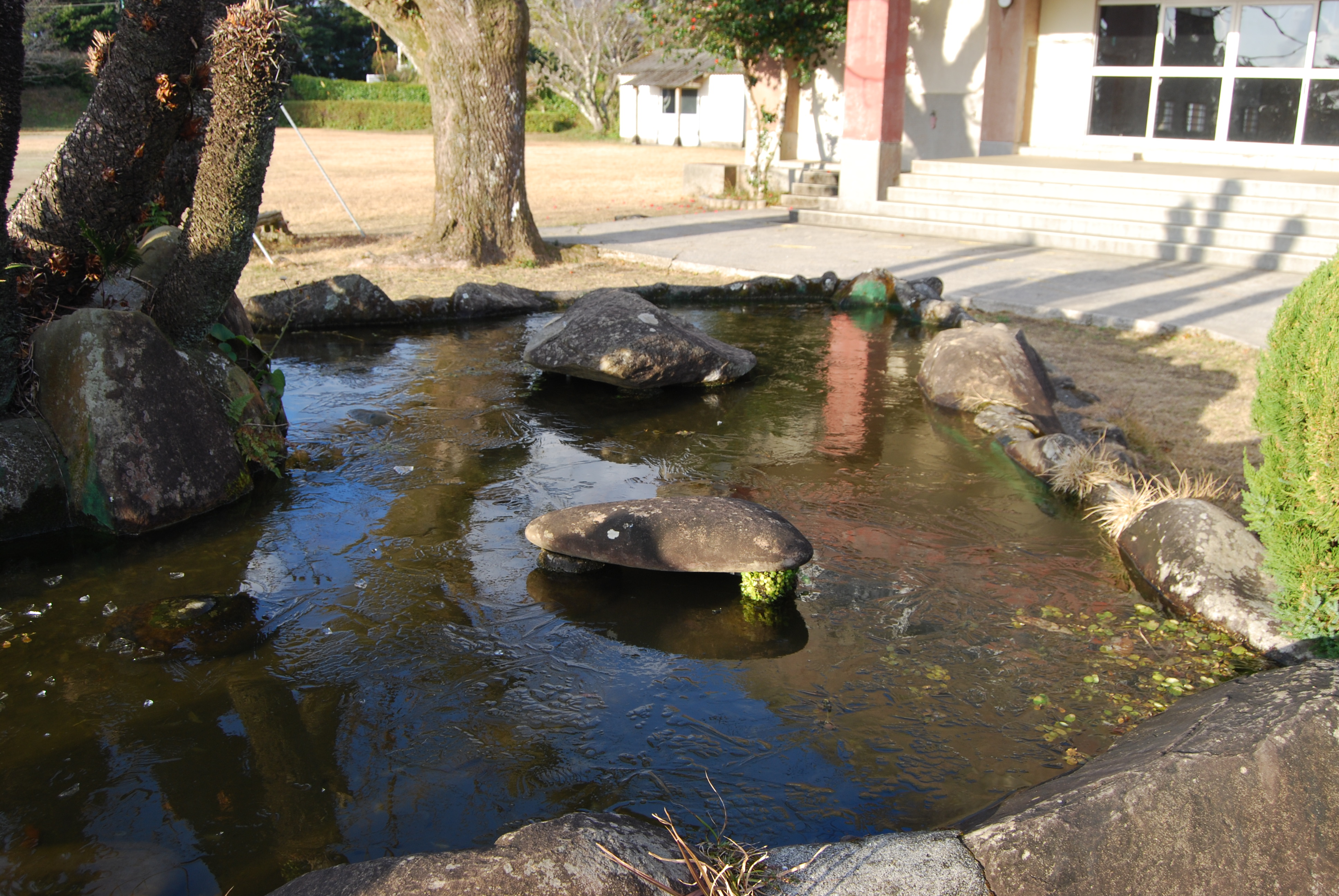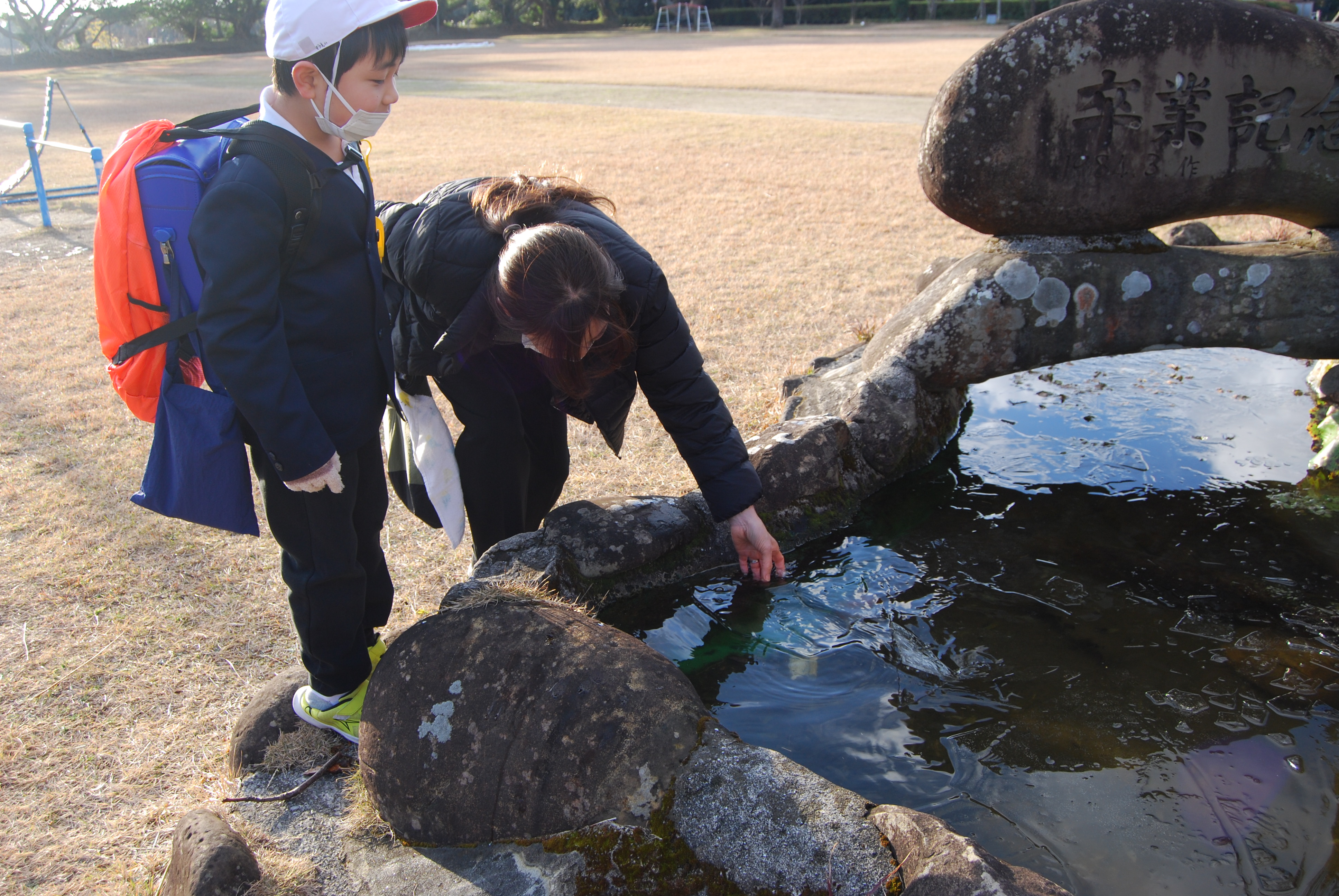 池の表面がカチコチに凍っているではありませんか!