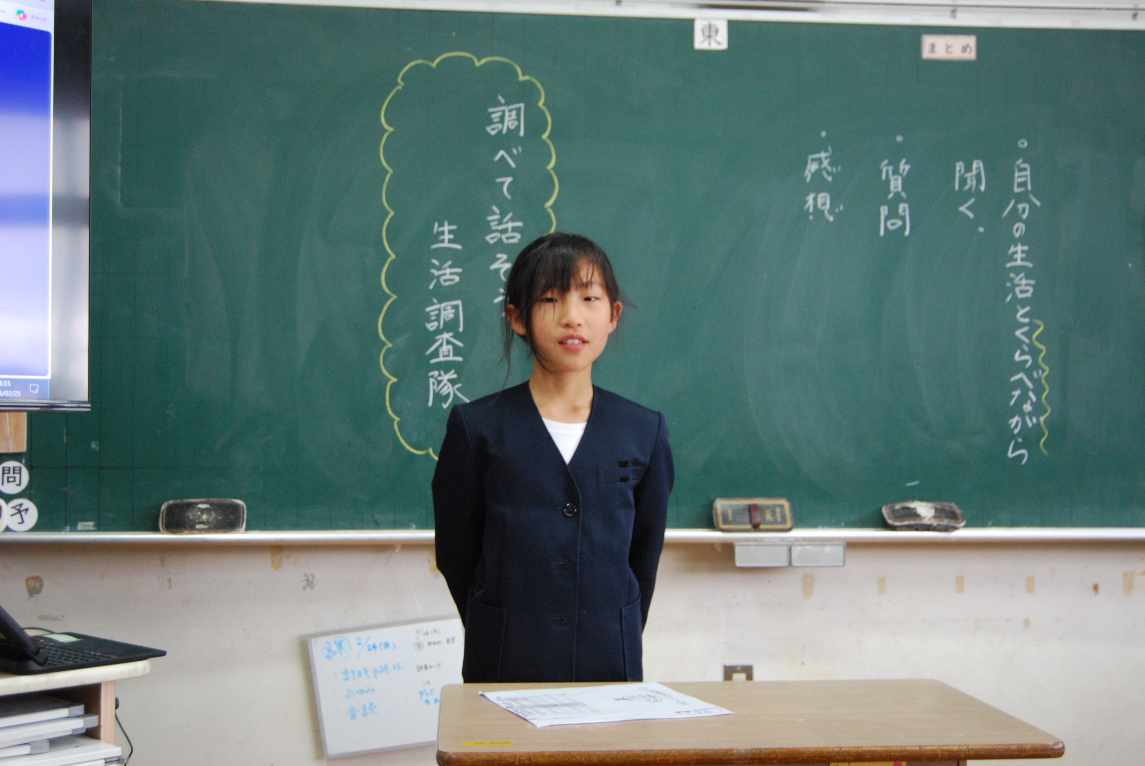 1時間目,緊張した面持ちの4年生…今日は,国語の「調べて話そう,生活調査隊」発表会。普段の生活で気になっていることを調べ,集まったデータを表やグラフ等にまとめ,それらを使いながら相手に分かりやすく伝える発表の仕方を身に付けるという単元です。