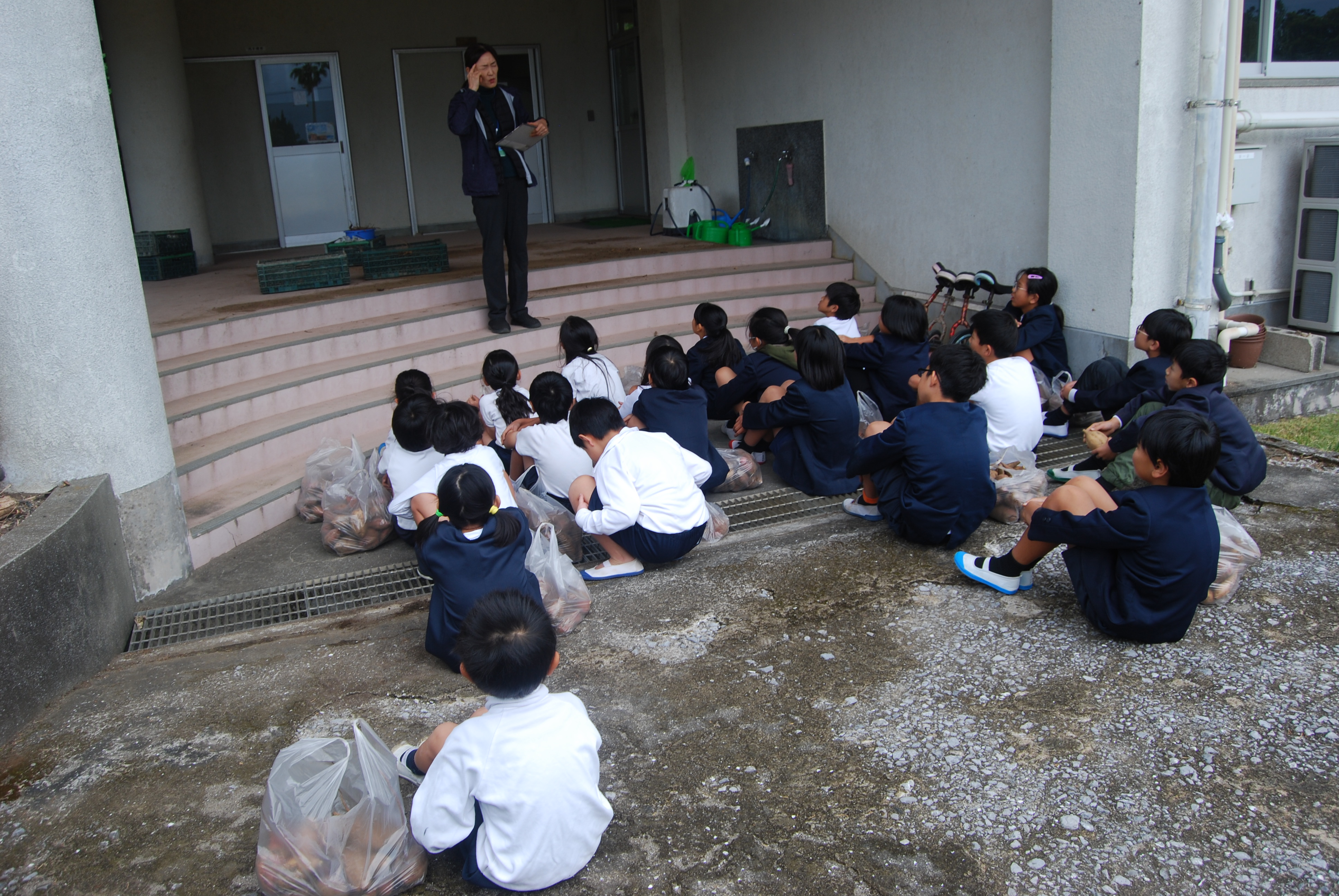 本日3校時は「収穫祭」と題して,11月に収穫して寝かせていた安納芋を焼き芋にしてみんなで食べる予定でしたが,悪天候が予想されたため,中止となりました。急遽予定を変更し,芋をみんなでほしい分だけ袋詰めする「プチ収穫祭」を行いました。