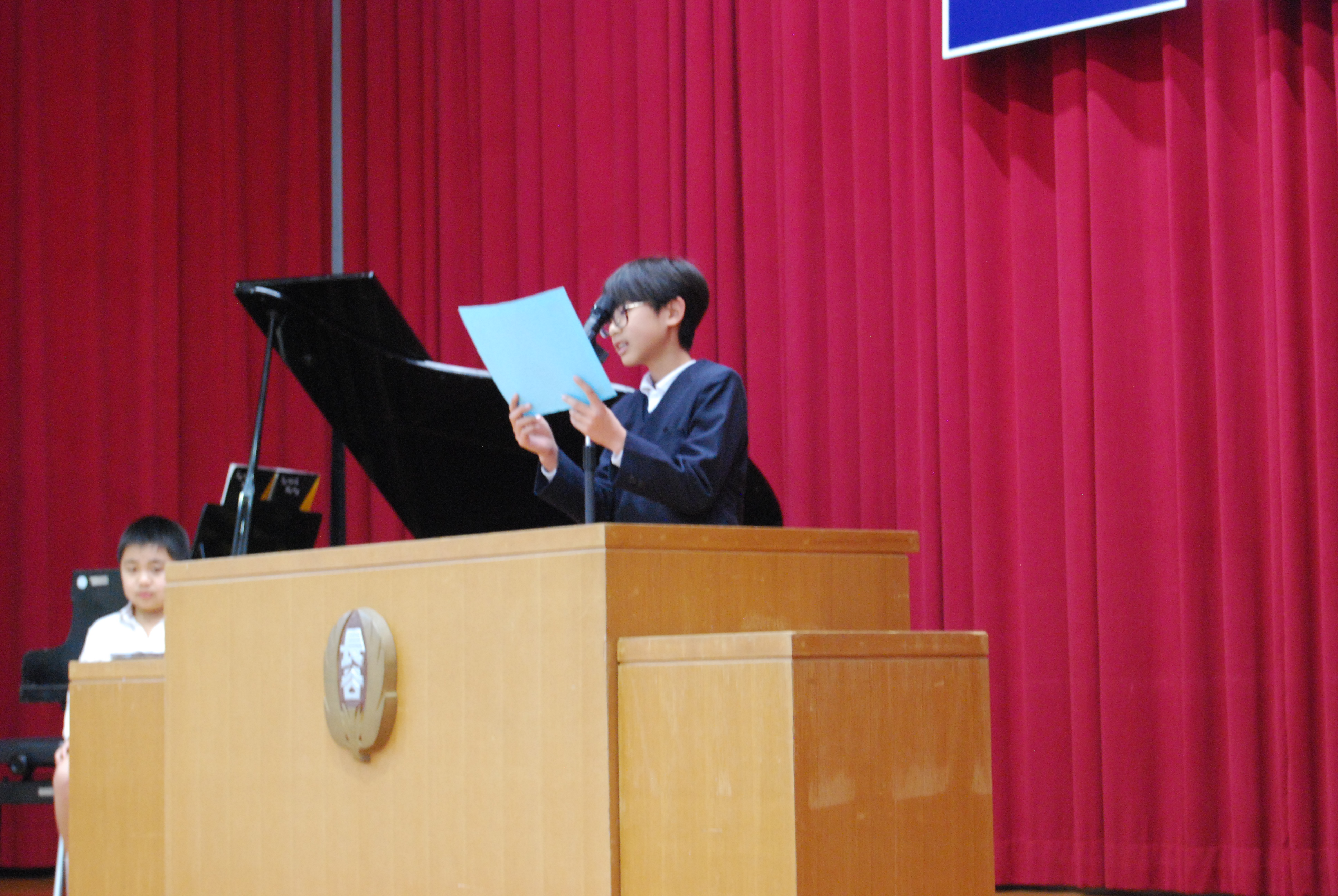 校歌斉唱では,5年生児童がピアノ伴奏を担当しました。とっても素敵な演奏でした♪