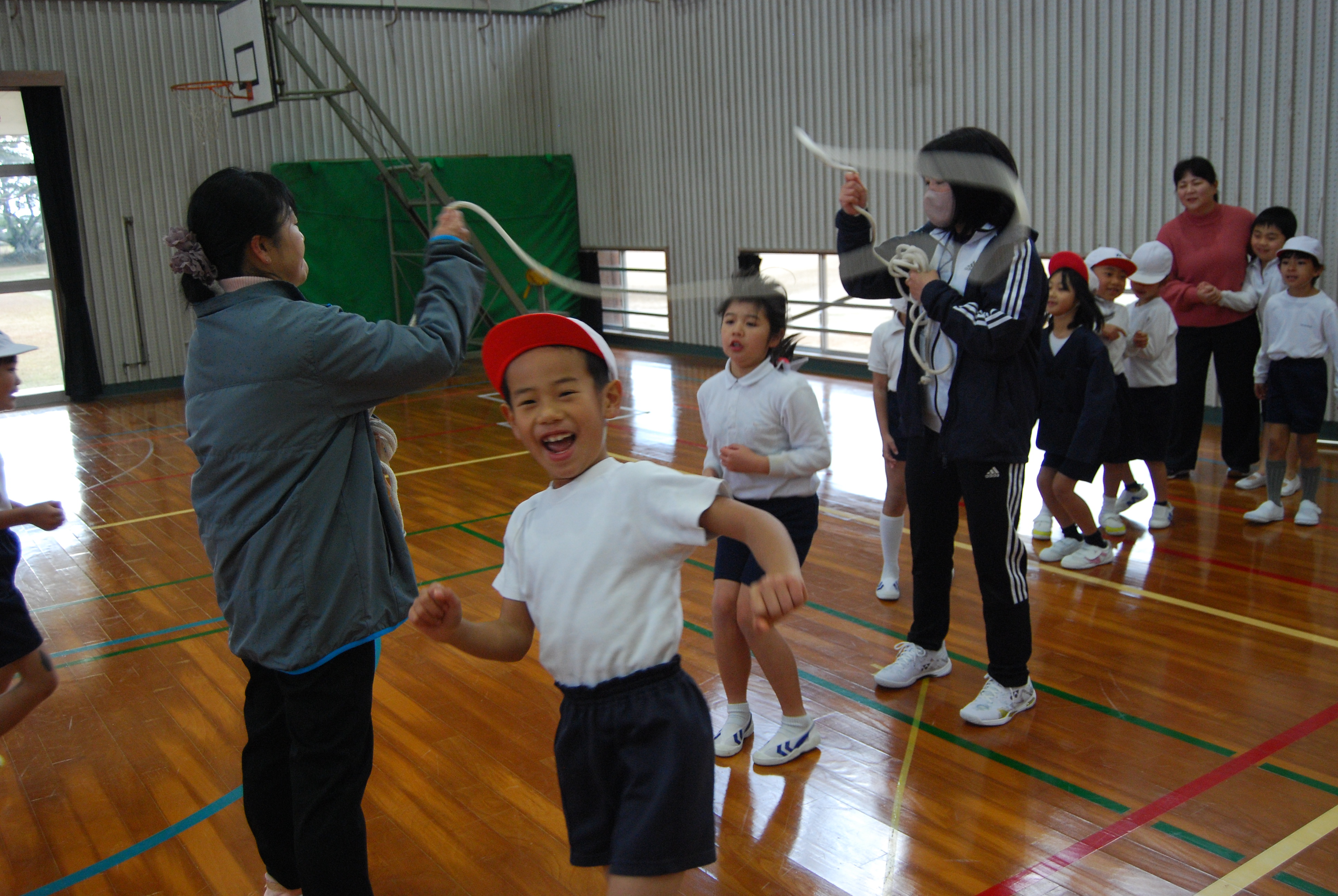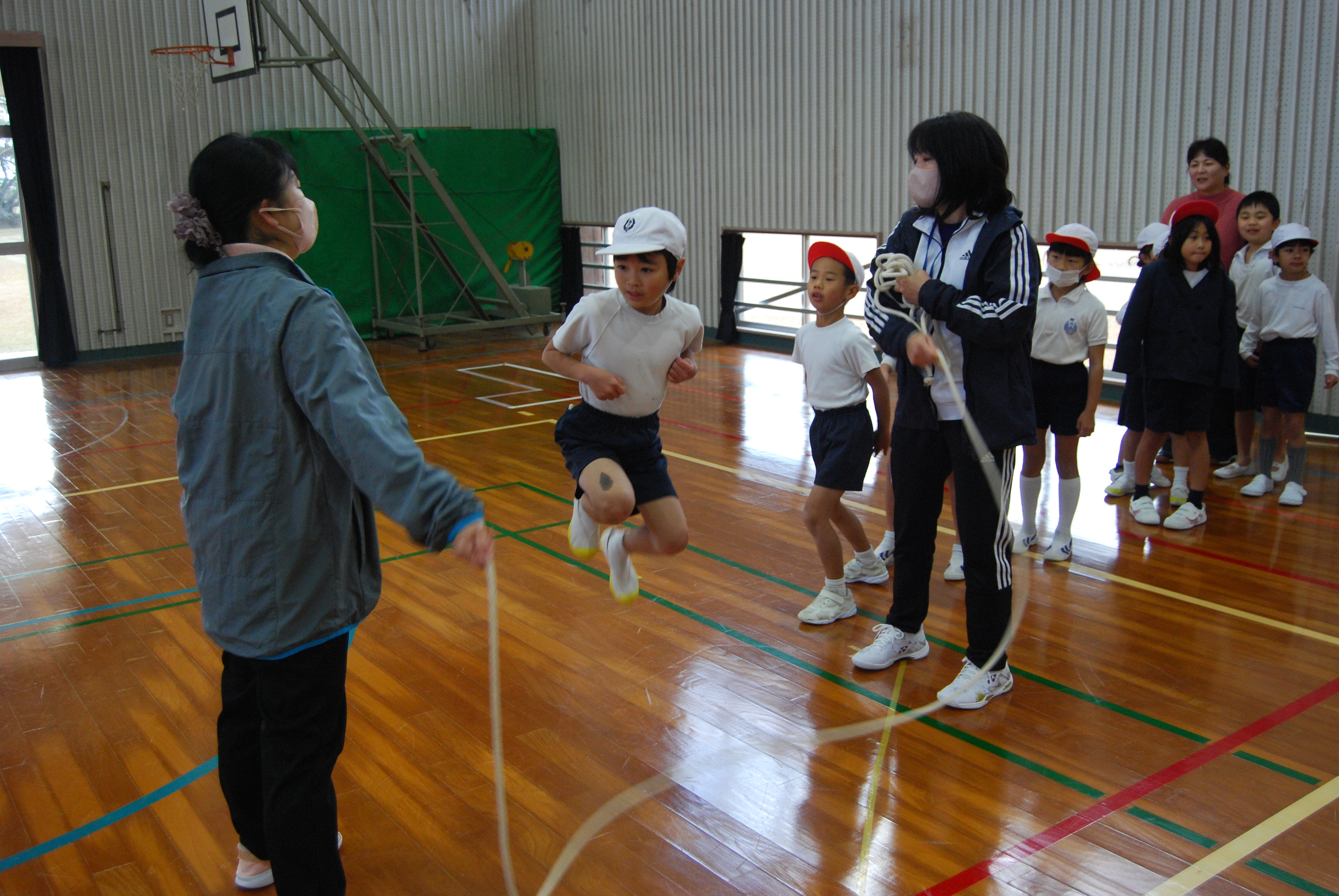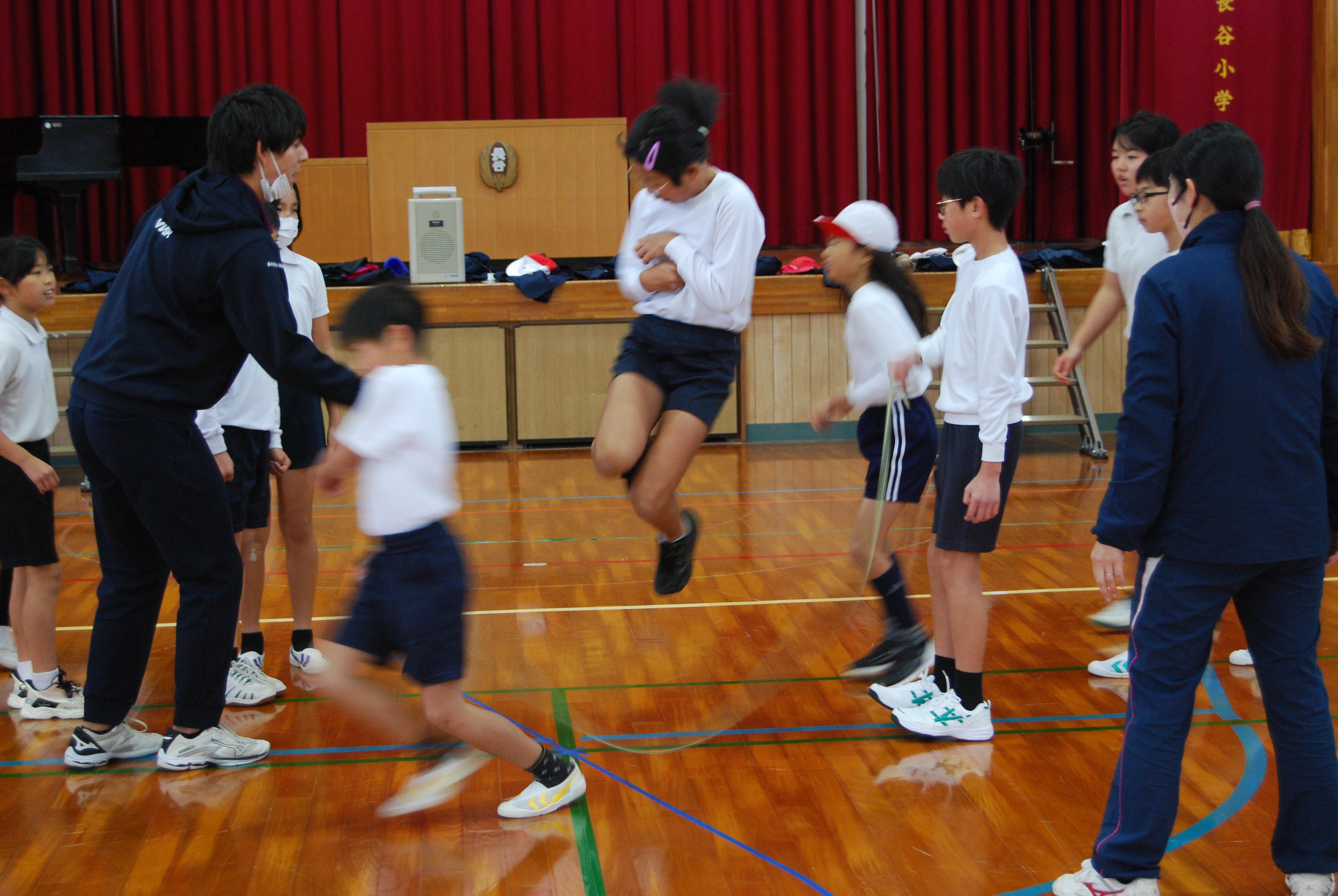 中・高学年の子供たちは流石,タンタンタンとリズムよく跳んでいきます。