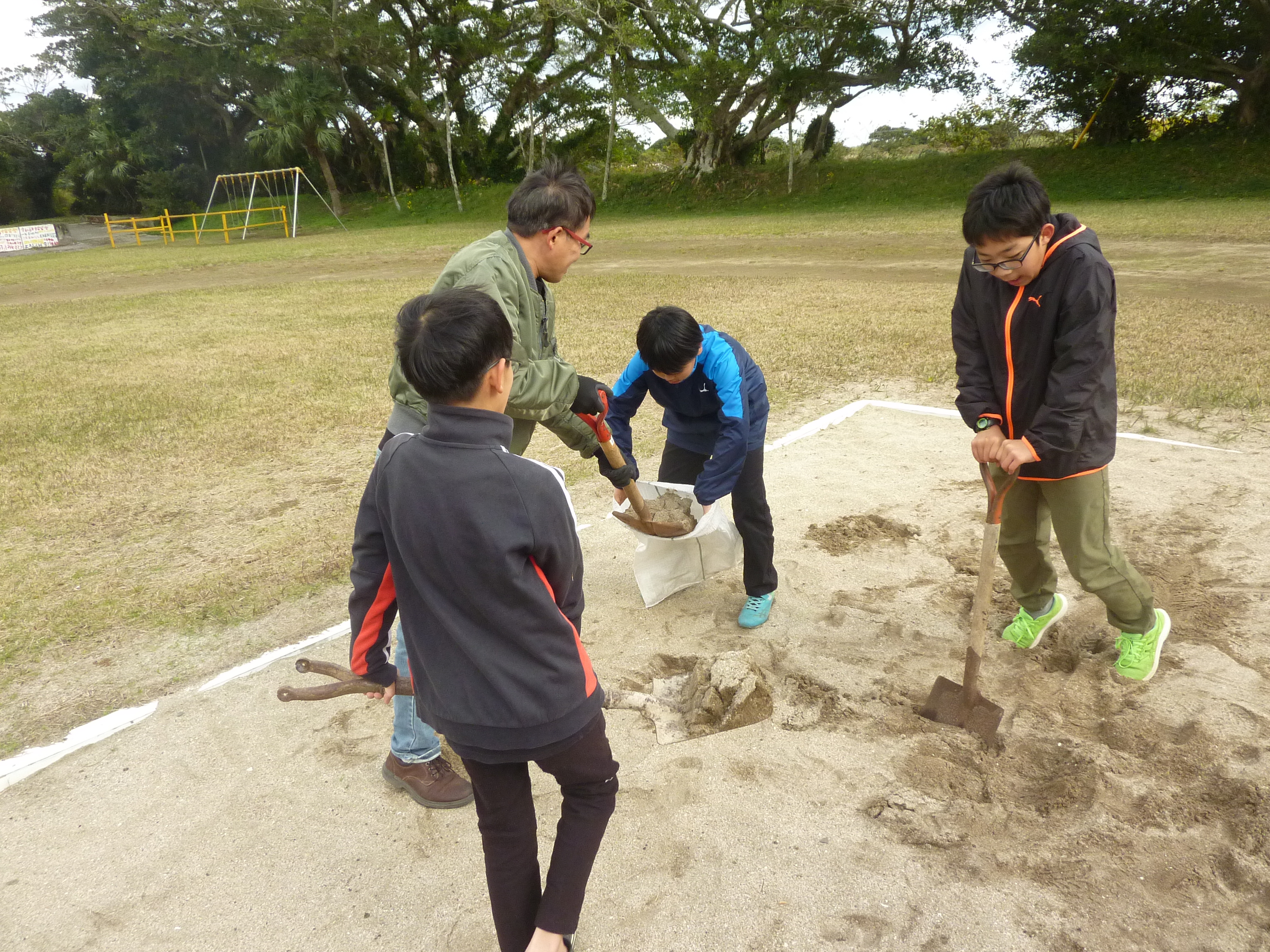 午前中,子供たちが作業しやすいように前準備するPTA役員のみなさん。