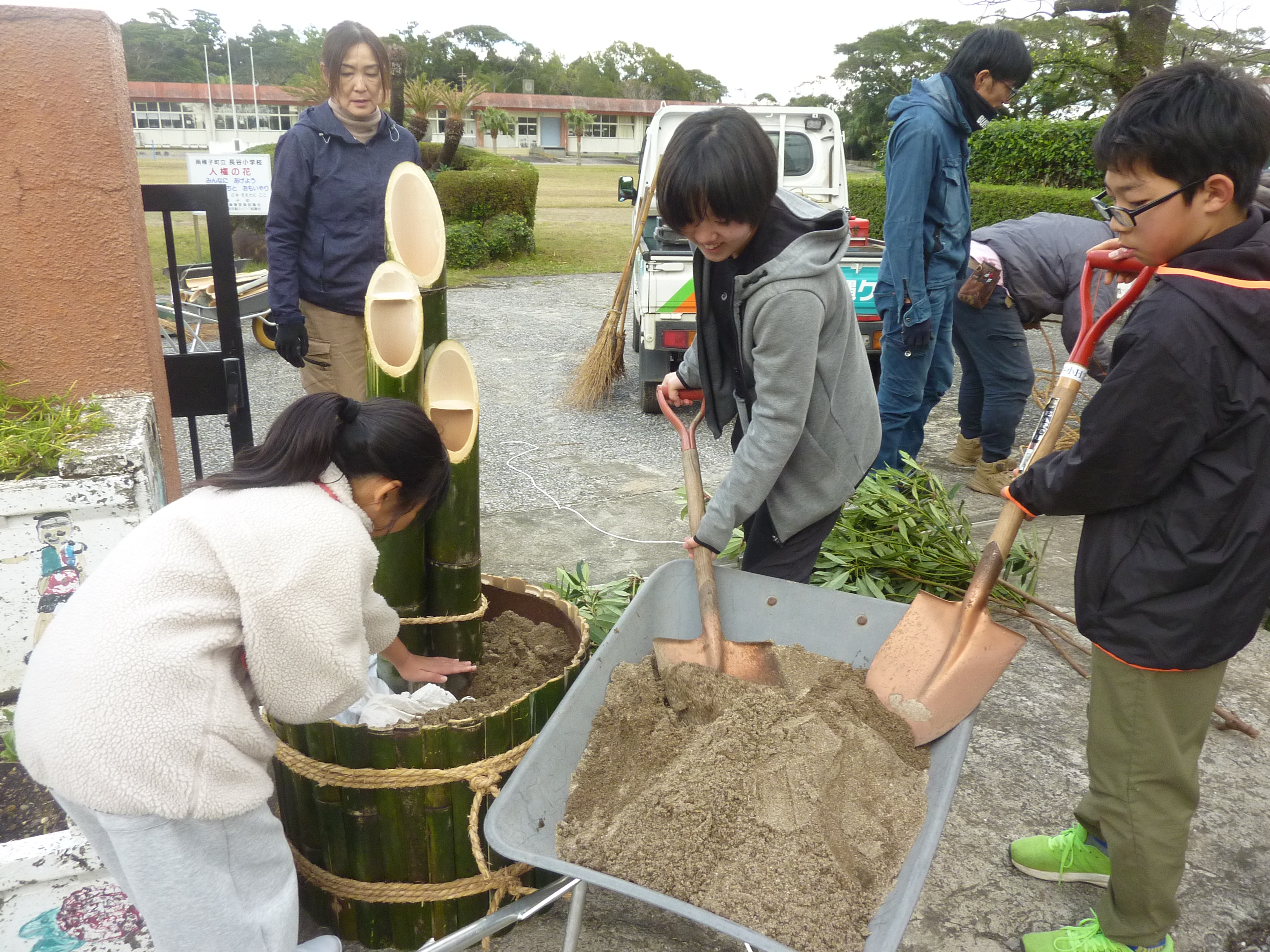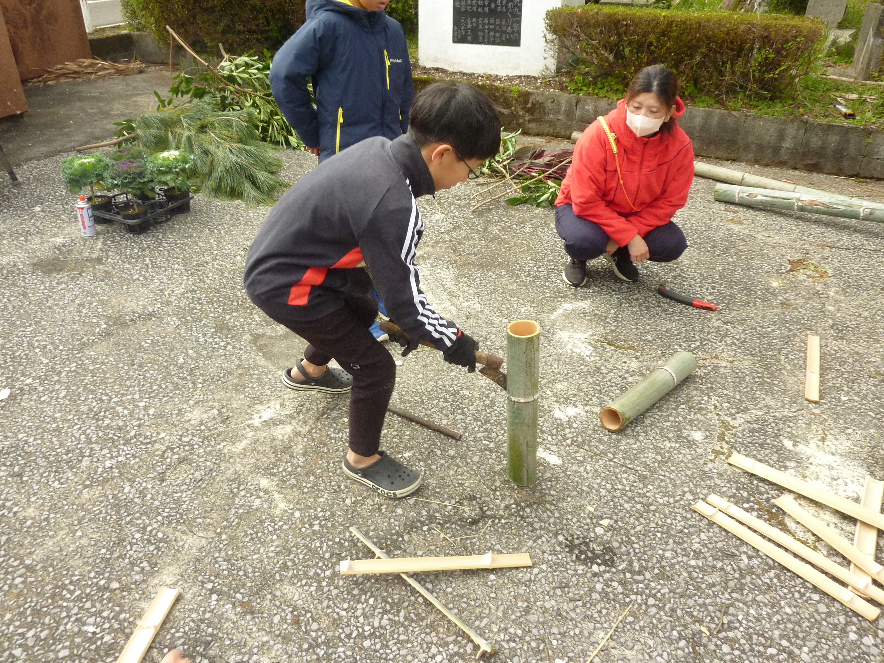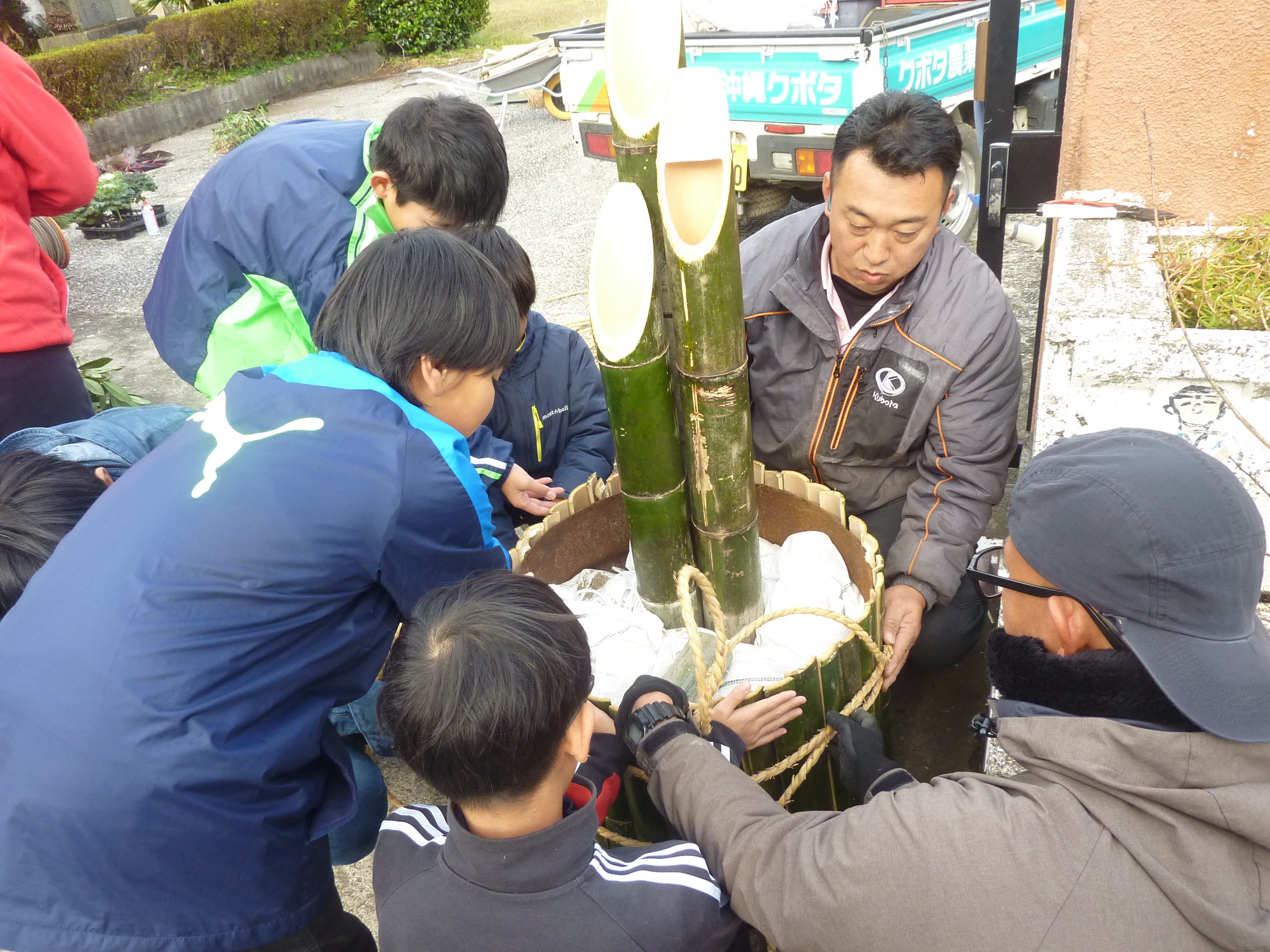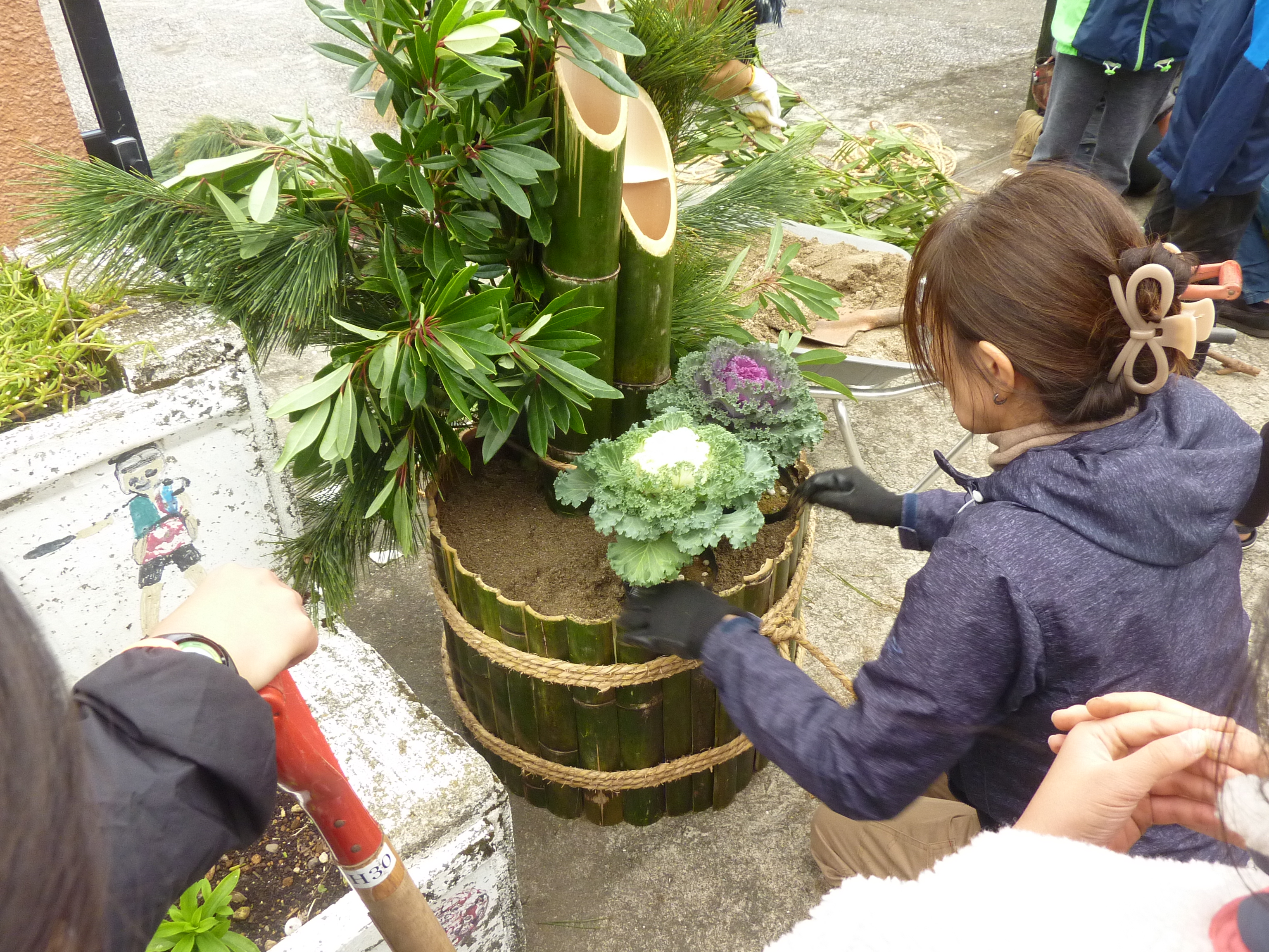 本日13時30分から,長谷小PTAによる門松作りを行いました。
