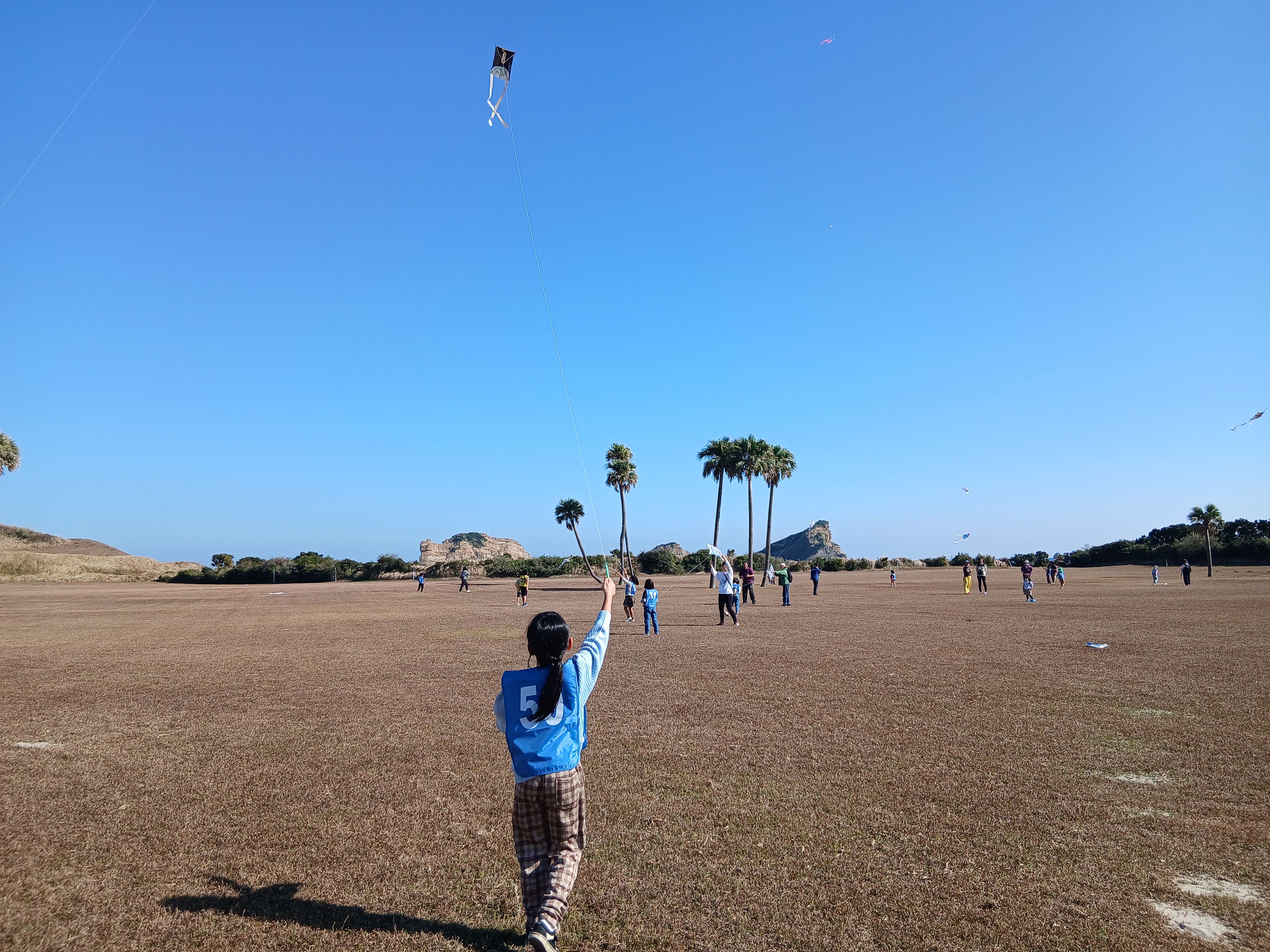 太平洋からの南風の助けもあり,上手に凧を高くあげることができました。