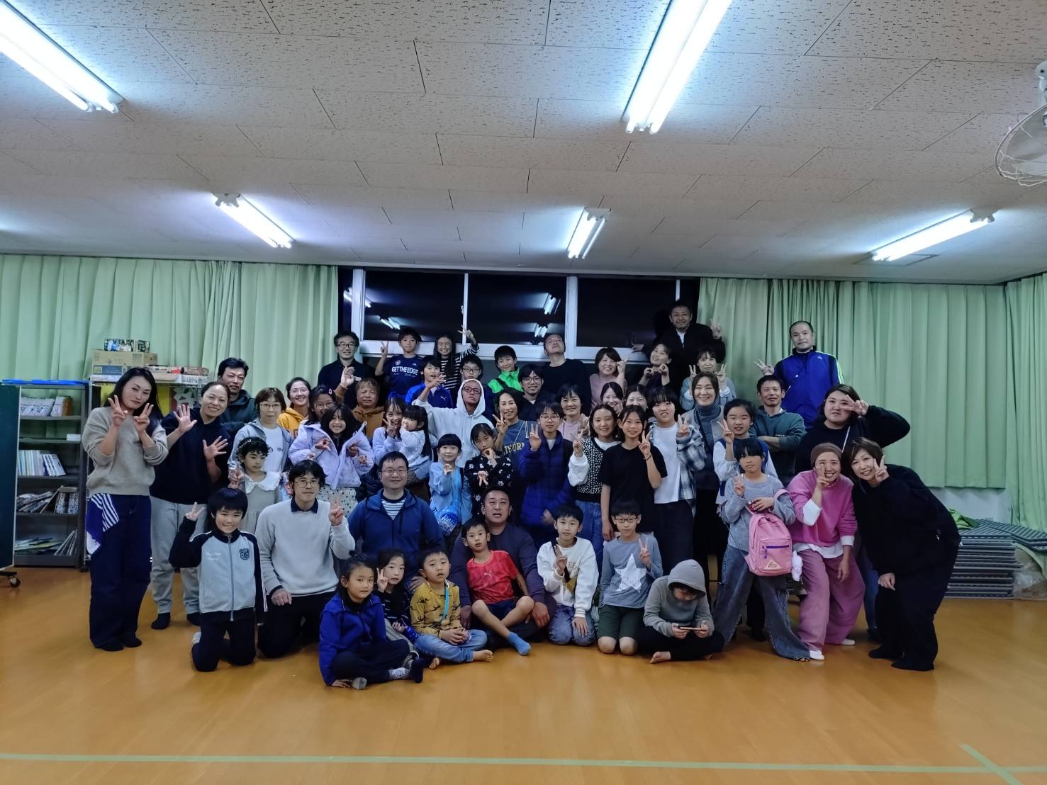 土曜授業のあとの活動だったので,疲れきった子供たちは,すぐに寝床につきました。翌朝はみんなでラジオ体操をして眠気を覚まし,寝具の片付けを済ませて朝ご飯。あっという間の2日間でした。